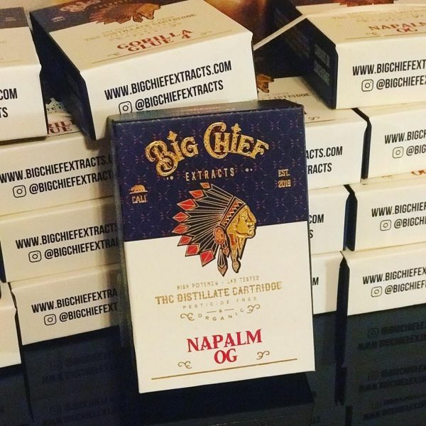 Napal Og Big Chief Cart Big Chief Cart Napal Og Napalm OG is a hybrid strain, This strain’s genetics include Tahoe Alien and Alien Kush.It originates from Afghanistan. It may taste fruity, spicy, earthy, sour, piney. When smoked, this strain can make you feel euphoria, creativity, calm, numbness, appetite gain, and pain relief. Negative side effects can include slight anxiety and slight dry mouth. When growing Napalm OG, growers have found that it is a medium yield plant.